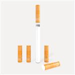 - Looks like a real cigarette (white body, yellow filter, red glowing tip)