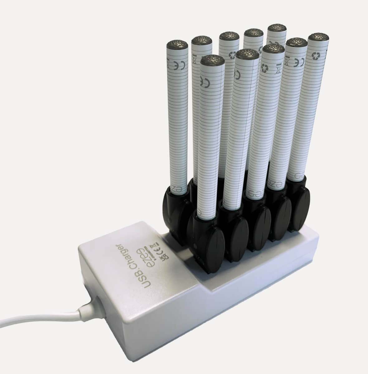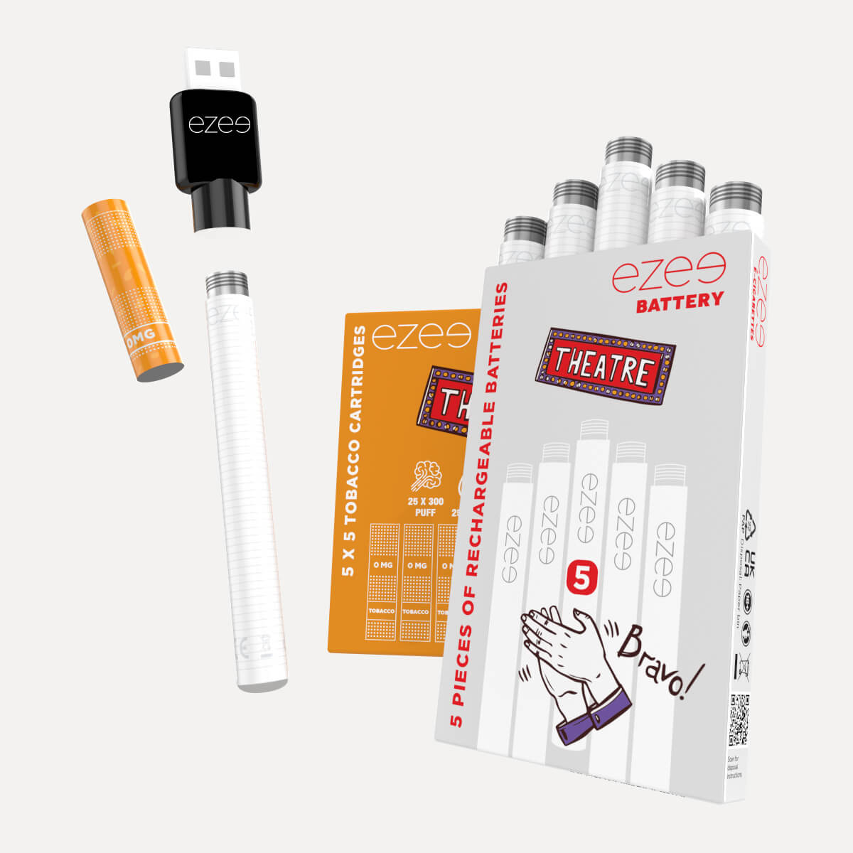 Each cartridge lasts around 300–350 puffs, depending on how it’s used. A realistic, safe, stage-ready alternative to real cigarettes - designed for professional productions.